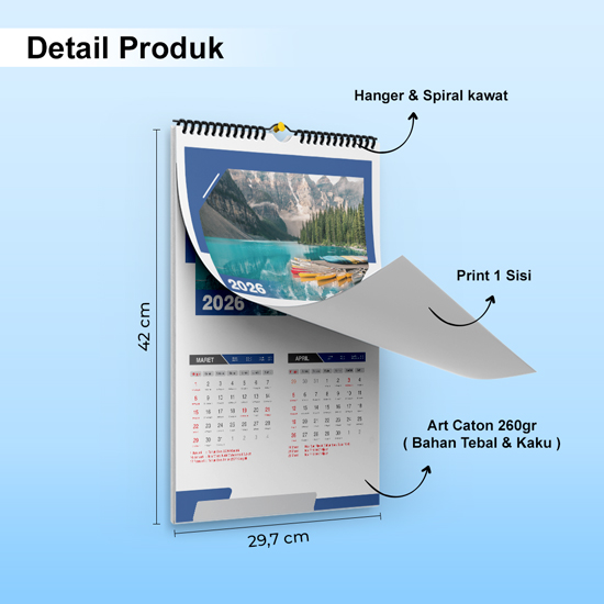 Kini buat Kalender Dinding jadi lebih mudah, praktis dan cepat hanya 1 jam jadi (file ready to print). Kualitas produk tetap menjadi nomor 1, produk ini sangat cocok untuk menghiasi ruangan favorit kamu atau souvenir cantik untuk teman, klien atau rekan bisnis.